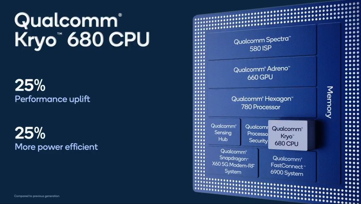 Neil Shah Mwc22 On Twitter Qualcomm Kyro 680 Cpu First To Use The New Arm X1 Core Seeing 25 Performance Lift And Greater Power Efficiencies Coupled With Advanced 5nm Process Node